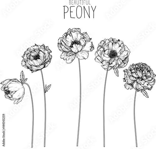 Vector hand drawn floral set with peonies and leaves, flower buds. Peony flower drawing sketch black white line art — stock. A group of illustrators and i modified the challenge line drawing drawn with pen on white paper in 2018. Learn how to draw flowers using simple line drawings. Drawing, peony flower line drawing png clipart. Printable black and white peony line drawing print please note that this is a digital download only, no physical product will be shipped.
