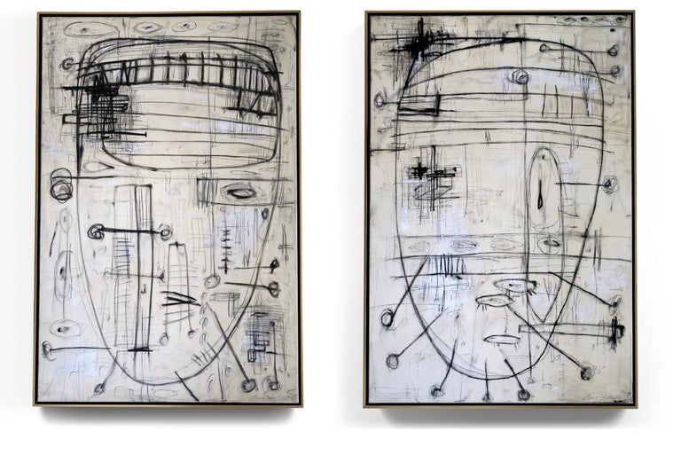 Karina Gentinetta Primal Faces I And Ii Pair Of Abstract Paintings In Black And White 60 X40 Ea At 1stdibs from a.1stdibscdn.com